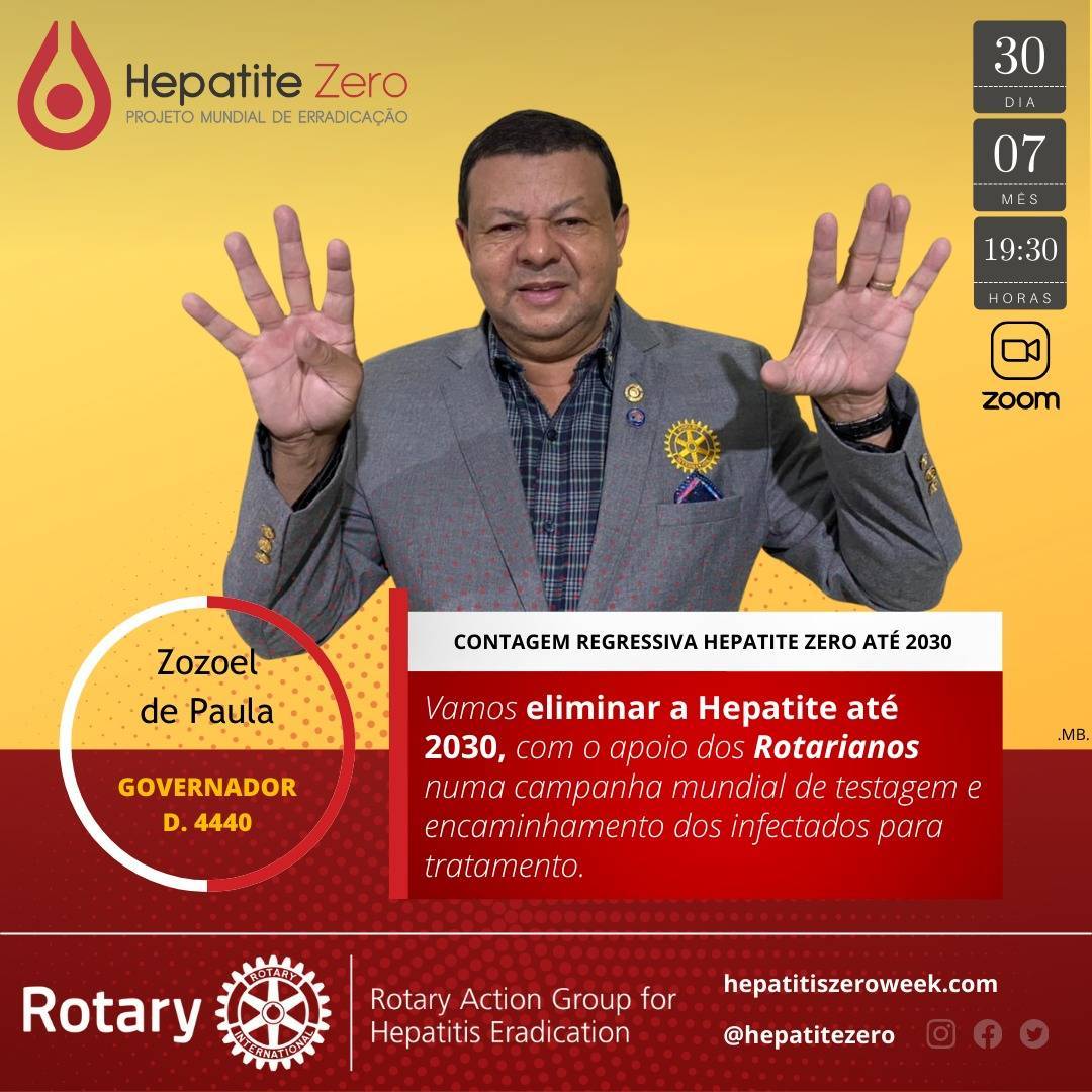 No dia 30 de julho, às 19h30, somos convidados por HUMBERTO SILVA, Criador do Projeto Hepatite Zero, que visa mobilizar mais de 200 países no mundo para a detecção, tratamento, vacinação e prevenção das Hepatites e Presidente mundial do R.A.G (Rotarian Action Group) do Rotary para a luta contra as Hepatites Virais, a participar de uma Reunião via Zoom, para refletirmos sobre: