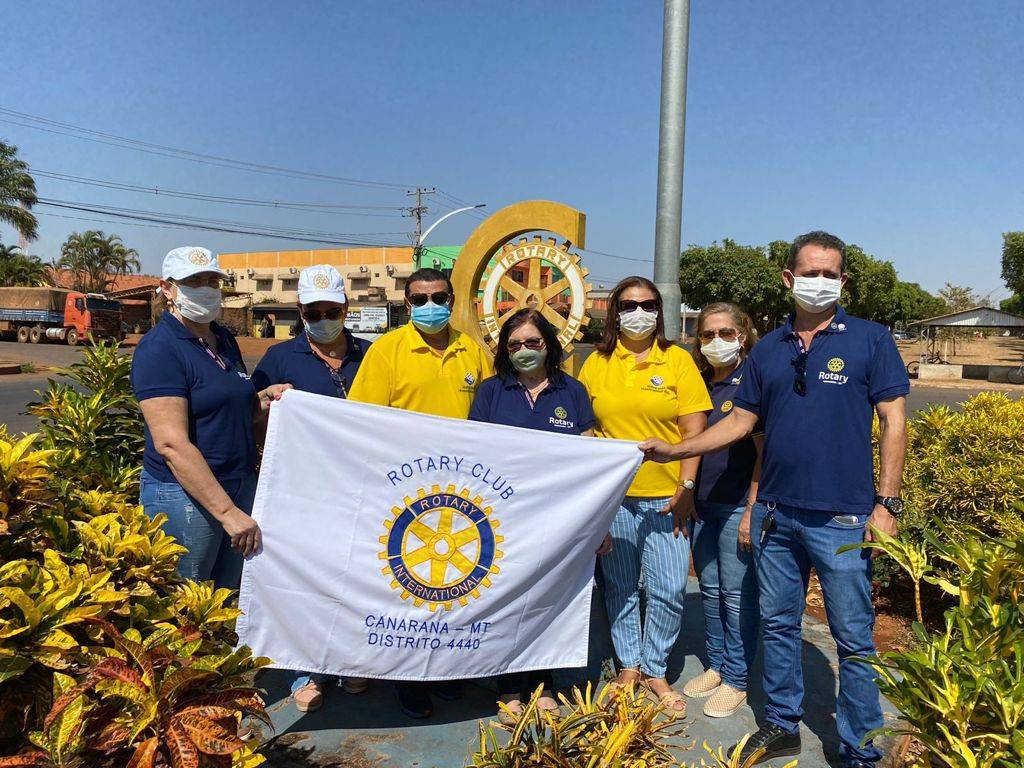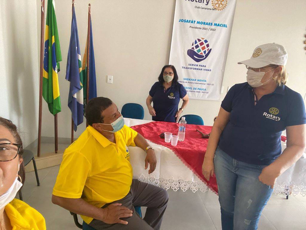 Recepcionados no Marco Rotário da cidade de Canarana pelo Presidente Josafát Moraes Maciel, o Governador 2021-22 do D.4440 Zozoel de Paula e a companheira Regina Célia Ferreira de Paula, Coord. Distrital da ESR/Casas da Amizade, juntamente com companheiros e companheiras do club.